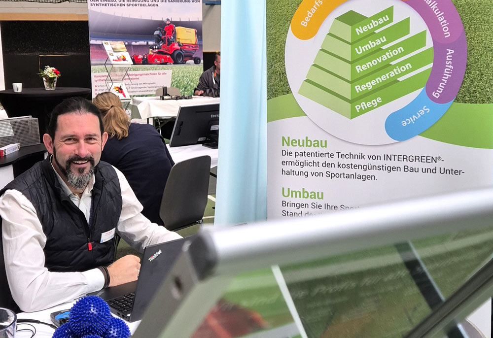 Die INTERGREEN AG informierte auf ihrem Stand gerne über die Vielfalt im Sportplatzbau und in der Sportplatzpflege. Auch der Umbau von Naturrasenplätze in Kunststoffrasenplätze bleibt ein stetes Thema.