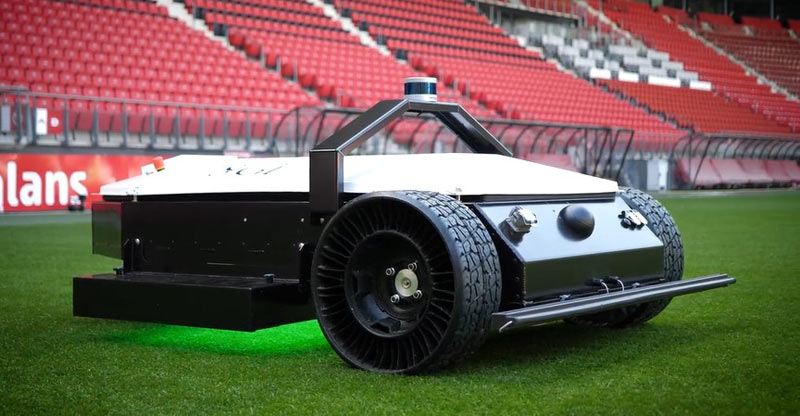Nach dem Scannen des gesamten Spielfeldes während der Installation folgt der Roboter einer voreingestellten Behandlungsroute. Anschließend arbeitet TurfRobot autonom, sodass sich das Platzwart-Team nach der Einrichtung des Roboters auf andere Pflegemaßnahmen konzentrieren kann.