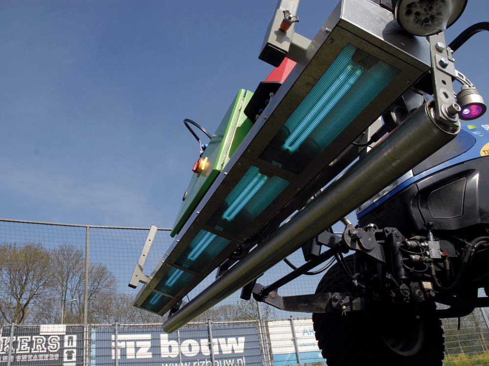 Für den sportplatztechnischen Einsatz stehen mobile und flexible Lösungen zur Verfügung. Ein Beispiel ist das Anbaugerät von Rhenac, das eine großflächige und zugleich präzise UVC-Behandlung im pflegerischen Alltag ermöglicht.