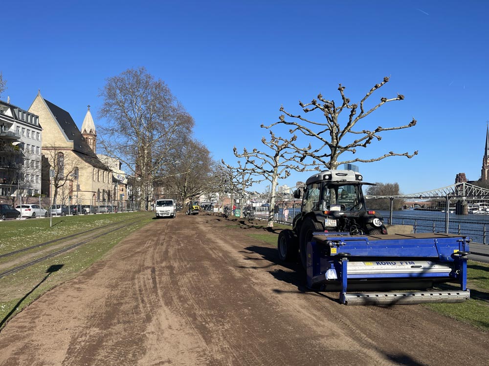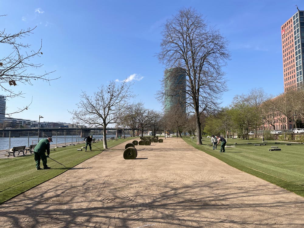 Rasenrenovation der „EM-Fanzone“ am Frankfurter Mainufer